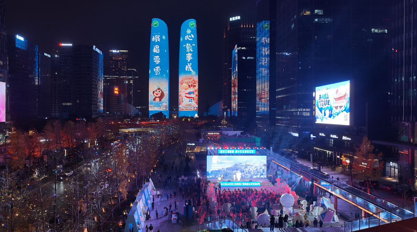 At 8 PM, all eyes turned to the 218-meter Twin Towers of Chengdu as the giant screen lit up, marking the official launch of the 2025 Leshan Winter Tour and the 27th Mount Emei Ice and Snow Hot Spring Season.